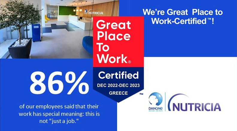 Η Danone Nutricia Ελλάδας αναδεικνύεται για 2η χρονιά Great Place to Work.